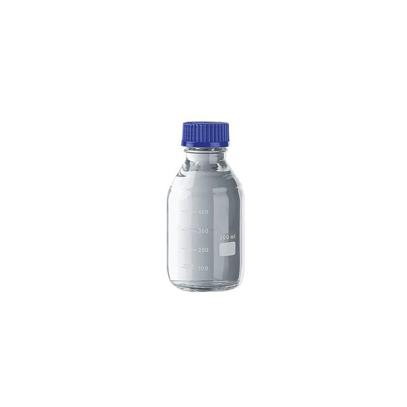 Transparente con tapa roscada azul. Fabricados en vidrio borosilicato 3.3 para altas temperaturas ( hasta 500 ºC)