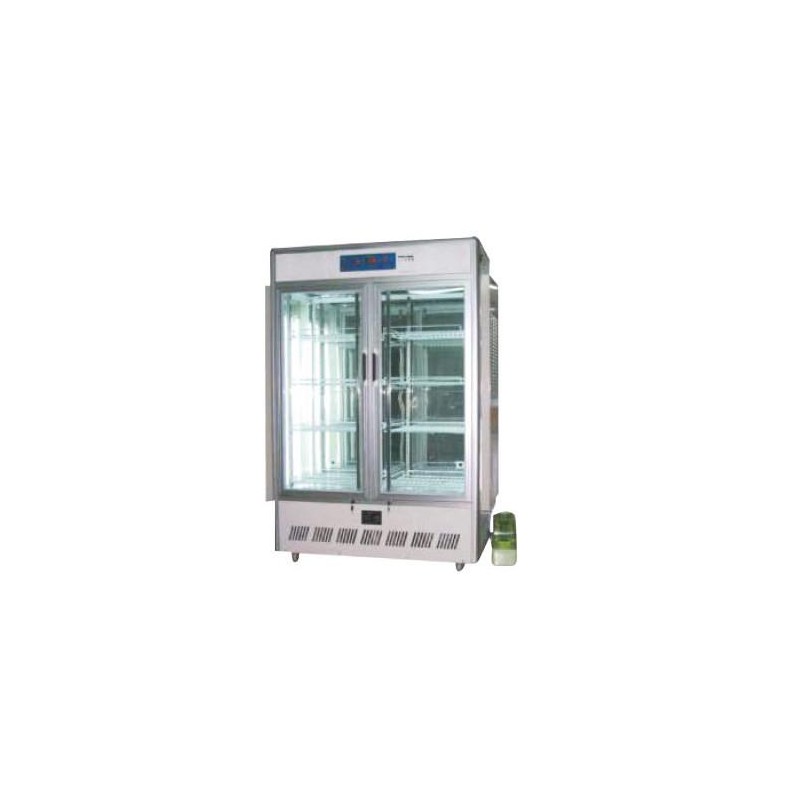 Volumen: 800 L Tamaño: 1260 × 660 × 1785 mm Intervalo de temperatura: 0 ~ 50ºC Potencia de calentamiento: 500W Intensidad luminosa: 0~5500LUX (normal) Grado de iluminación: 0~3 grados (luz intensa: 0~8 grados) Intervalo de humedad relativa: 50~95 % HR Fluctuación de temperatura:±0.5ºC Uniformidad de temperatura: ±1ºC Fluctuación de humedad: ±5% RH Desviación: ±5% RH Potencia del compresor: 190~320 W Tiempo de atraso de seguridad del compresor: 3 min Ruido: < 70 dB Capacidad del tanque de agua del humidificador: 5L Modo de funcionamiento: Operación continua (funcionamiento intermitente del compresor) Ambiente de trabajo: Temperatura: 0-40°C; HR:<80%; no gases corrosivos Suministro de energía: 200±22V, 50±0.5Hz |