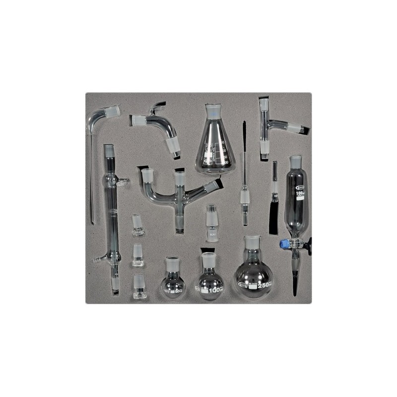 Para uso de los estudiantes en la preparación de la química orgánica hasta la escala de G 1501, esto incluye todo el equipamiento necesario para permitir una amplia gama de preparación para llevarse a cabo. También es de gran valor para los laboratorios industriales donde el entre de trabajo preparativo no es muy grande y puede ocurrir a intervalos poco frecuentes. Para tales aplicaciones, este conjunto tiene la ventaja de cubrir un campo ex intensivo de trabajo y que ocupa poco espacio cuando no esté en uso.