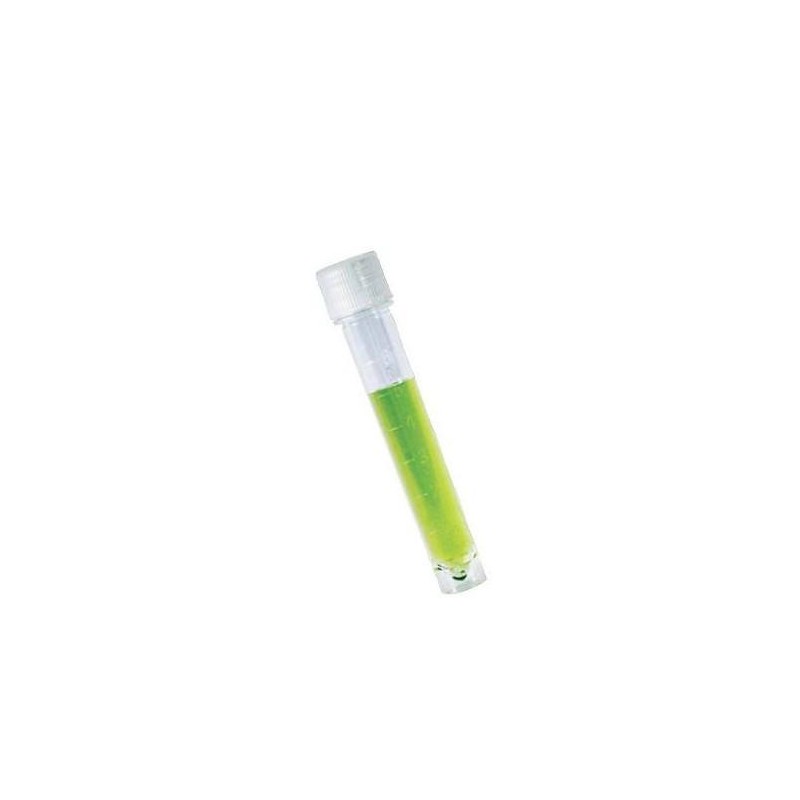 Tubo de poliestireno, tapa de polietileno.