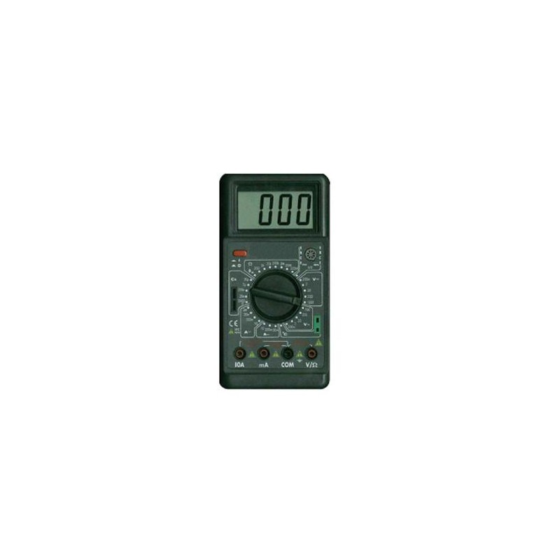 Multimedidor multifunción digital para medir Voltaje, corriente, resistencia de CA y CD, también prueba transistores y diodos, incluye fusible y terminales de prueba tipo punta. Trabaja hasta con 750 VCD, 2MΩ, 10 A C.A. Todas las lecturas se muestran en un display digital. Contiene su pila de funcionamiento.